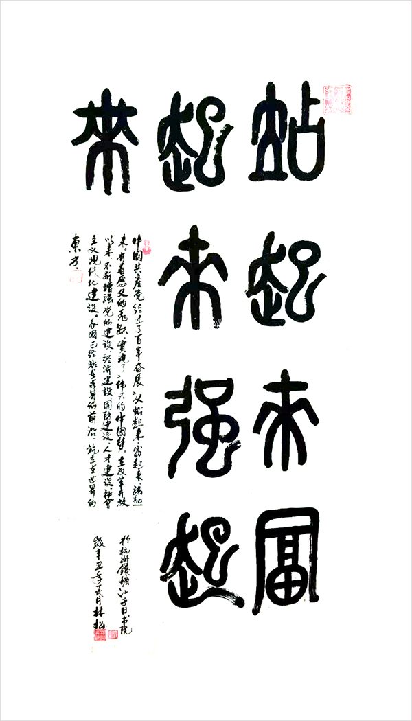 2020年度有三位著名书画评论家:石振华为其评论《穷研篆籀,功省名成》和著名书画家刘建明老师为其《饱满圆厚,飞仪多姿》刘淼老师为其《法由师授写正宗,不遗余力弘文化》进行为其作品的评论。