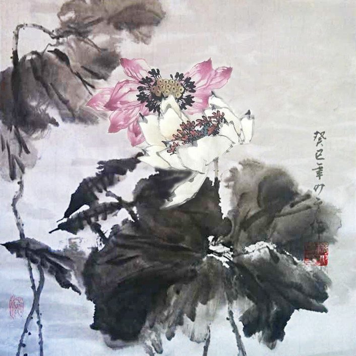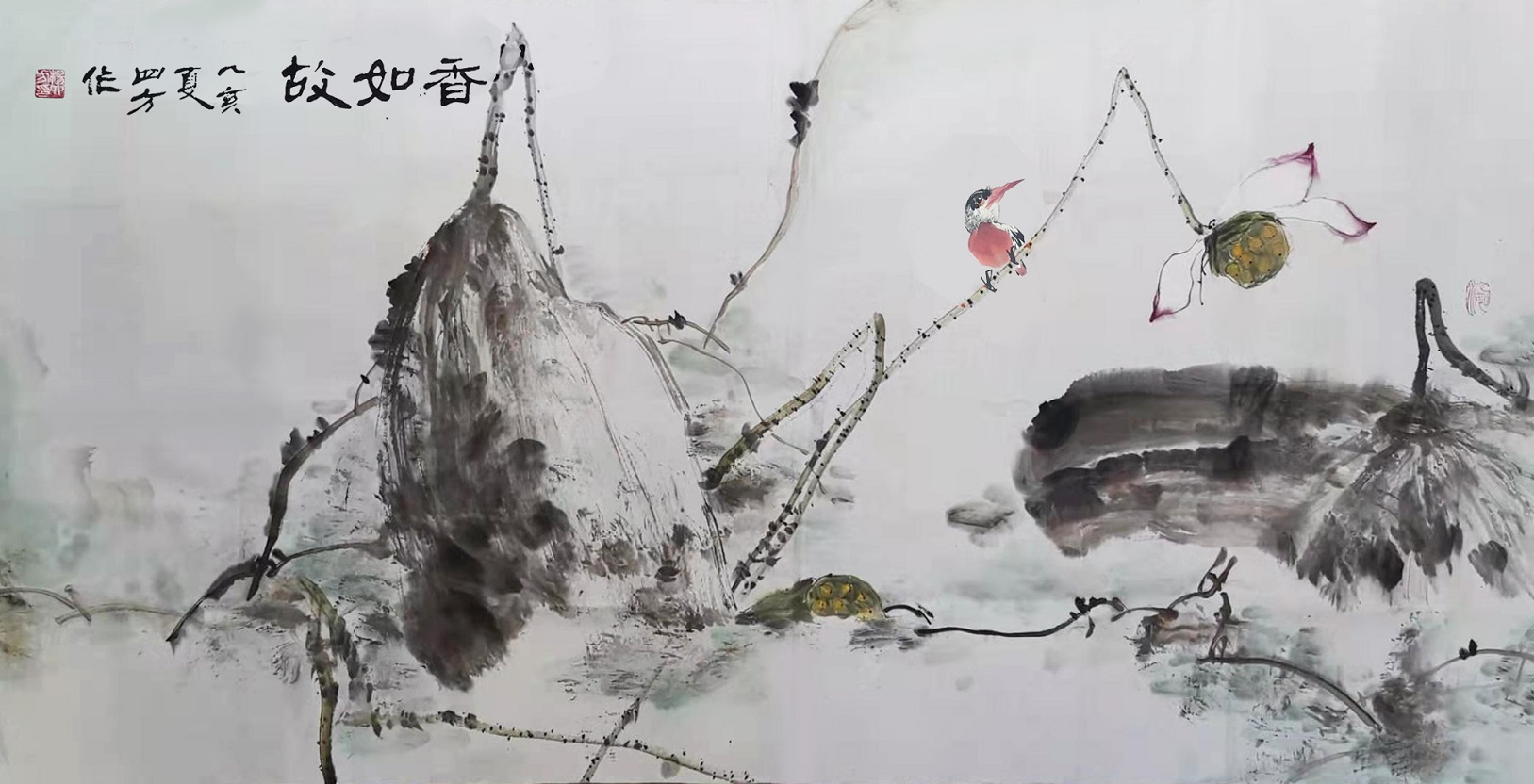 《神韵》纸本水墨68×68cm《珠碧空明》纸本68×68cm《清露》纸本水墨130×80cm《香如故》纸本水墨180×97cm《般若》纸本水墨180×97cm