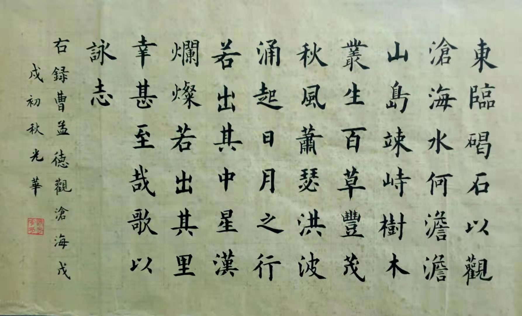 沈光华,男,汉族,1965年3月出生于重庆潼南。2003年浙大自考毕业。从小酷爱书法和写字,书法师从郭高友,自2013年至今,跟随郭高友老师学习硬笔和毛笔书法。浙江省硬笔书法家协会第十二届网络展评优秀奖,浙江省硬笔书法家协会会员,嘉兴市秀洲区书法家协会会员。作品入编由贵州省书法家协会主办《黔之爱●全国书画名家作品集》,作品曾捐赠俄罗斯乌拉尔国立大学图书馆等地。