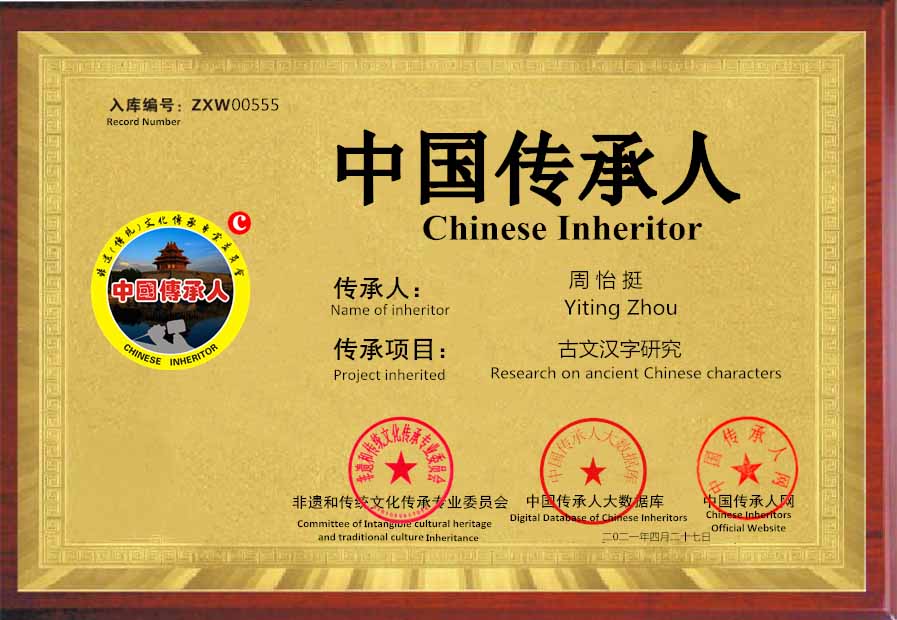 周怡挺(周逸霆),别号叶子、湮翔、了凡,聚雅斋主人。国礼艺术家、书法家、美术家、作家、诗人。八十年代生于浙江温州书香门第,年幼时由其祖父传授书法,学书先由柳、颜、欧,后学赵、汉隶等,之后涉及汉简、魏碑等各种字帖,一直以来多方拜师学习书画漆画艺术并去领悟艺术之美的真谛。