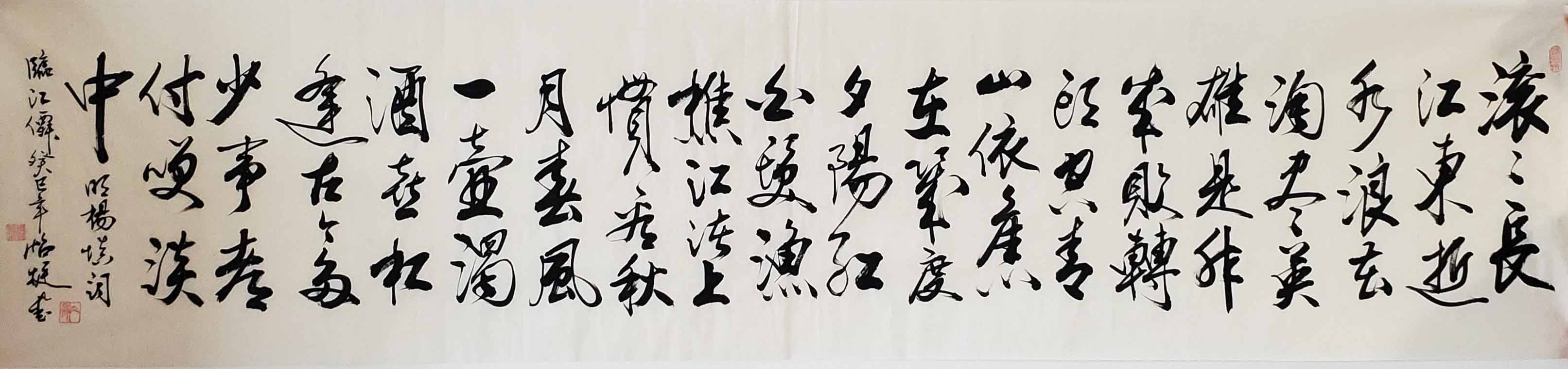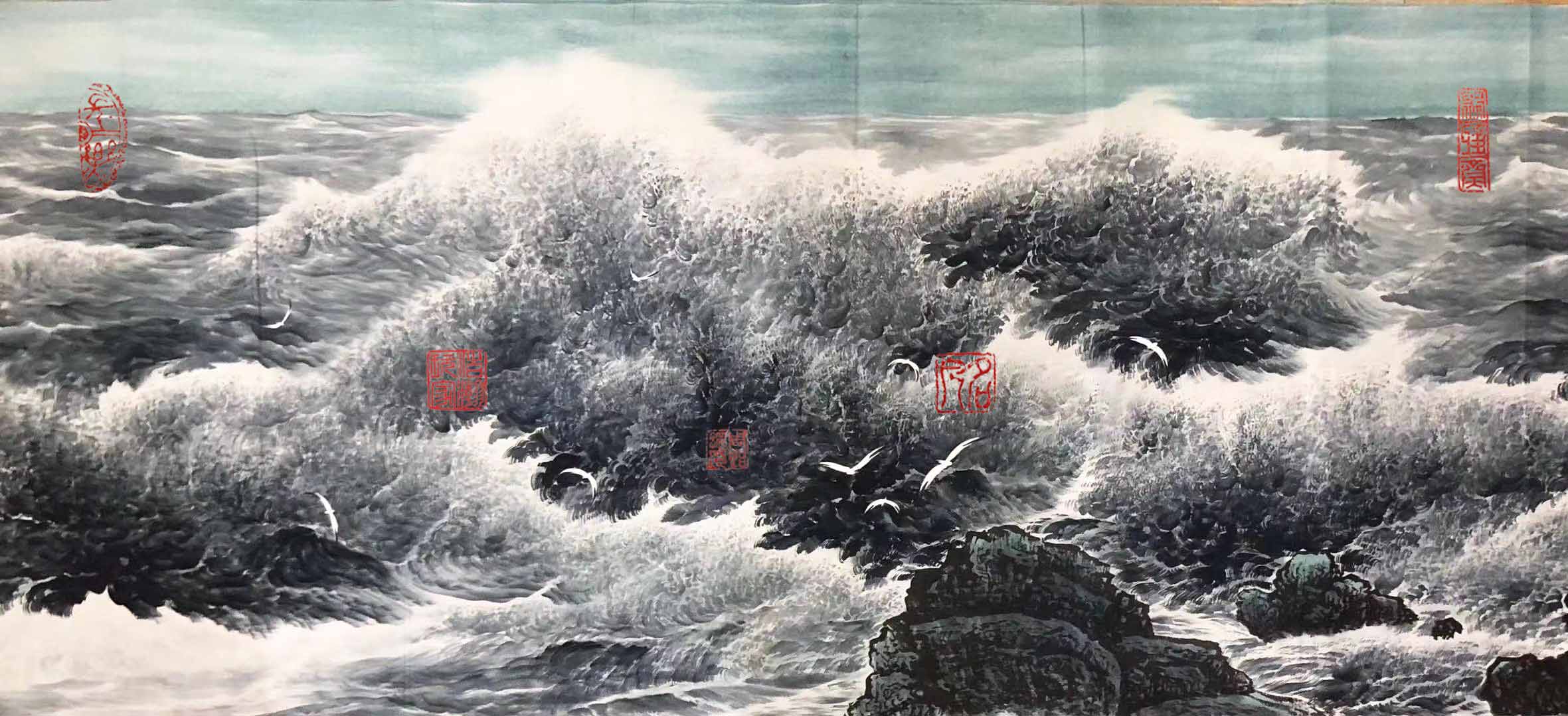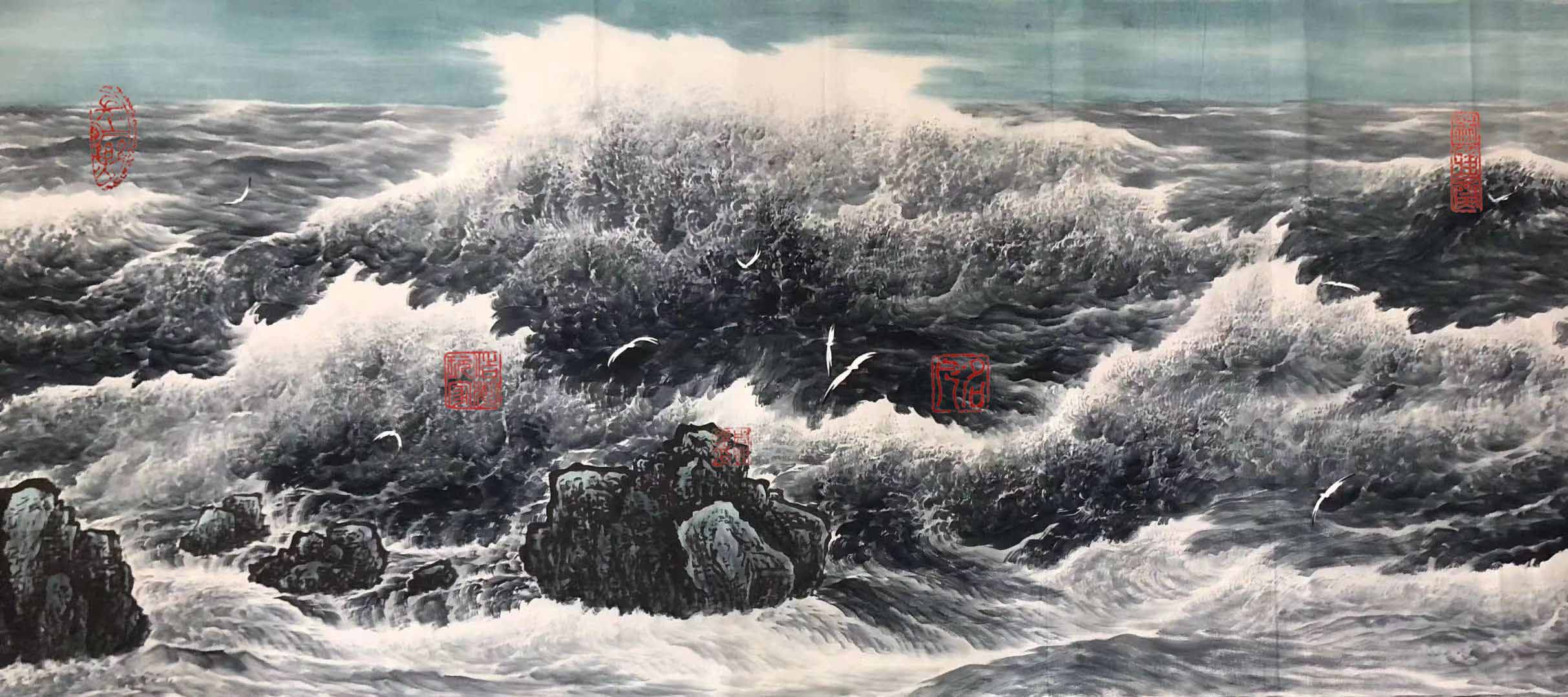 在艺术创作中,精取于书法美术界诸家名师,善于广取博收,创作意念不拘一格,积极探索,软硬结合,洒脱奔放,别具风格,多次在国内外书法美术大赛中脱颖而出荣获大奖,因对中华古代历史有所研究,深入两周金文的探索,因追扬州八怪书艺之风,后拜李仲安(九怪山人)为师,持正、行、草、隶、篆、殷商西周甲骨、象形、金鼎、石鼓等文字融浑一体,博采众长,百家风神气韵于一体,追求挺拔秀丽,流畅劲逸的艺术风格,笔笔精到,结构严谨,形神皆备,书时能乱石参差,绚丽如画,意幻无书,置换多变,古朴典雅,情趣盎然,耐人寻味。