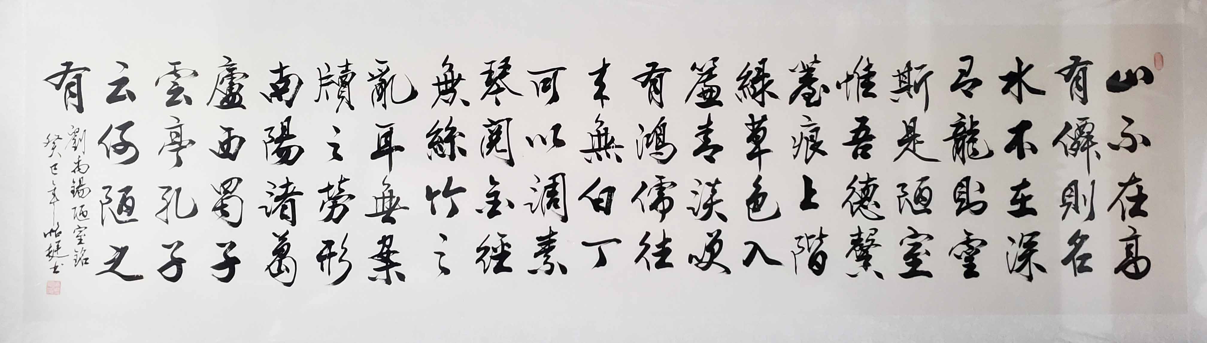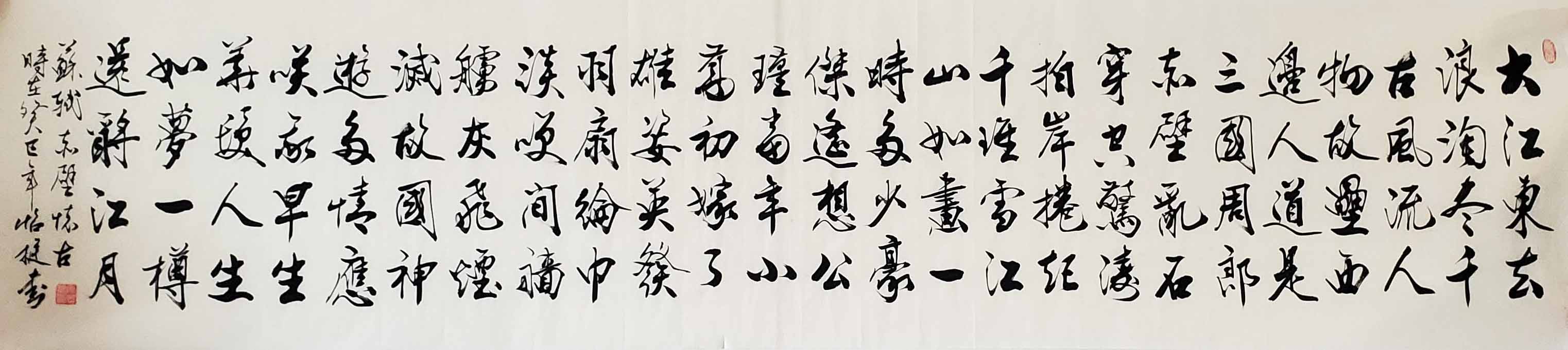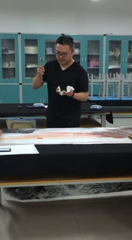 在艺术创作中,精取于书法美术界诸家名师,善于广取博收,创作意念不拘一格,积极探索,软硬结合,洒脱奔放,别具风格,多次在国内外书法美术大赛中脱颖而出荣获大奖,因对中华古代历史有所研究,深入两周金文的探索,因追扬州八怪书艺之风,后拜李仲安(九怪山人)为师,持正、行、草、隶、篆、殷商西周甲骨、象形、金鼎、石鼓等文字融浑一体,博采众长,百家风神气韵于一体,追求挺拔秀丽,流畅劲逸的艺术风格,笔笔精到,结构严谨,形神皆备,书时能乱石参差,绚丽如画,意幻无书,置换多变,古朴典雅,情趣盎然,耐人寻味。