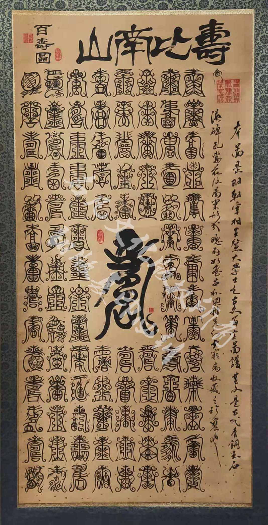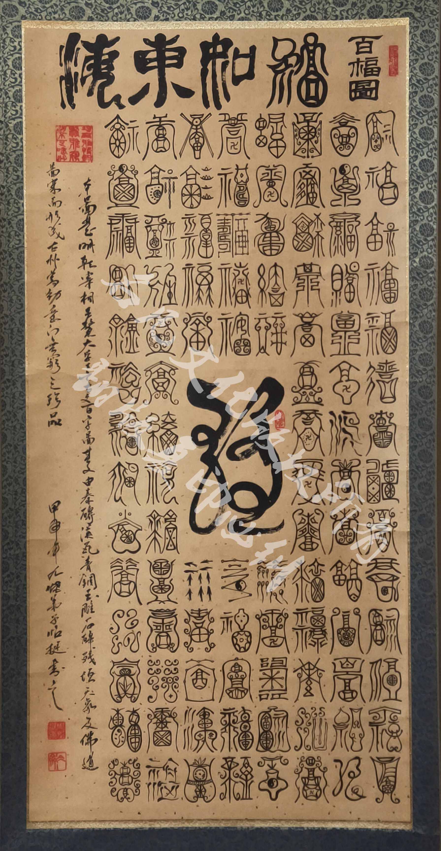 明朝宰相王鏊大学士珍藏墨宝传授至李氏祖上,墨稿(失传文字)古文百字图谱写法创意李老倾囊相授,其文是古代青铜玉石,汉碑瓦当花纹图饰,综合人文学,宗教学,星相学等等所归纳的美好寓意。现有百龟、百龙、百凤、百虎、百龟、百马、百羊、百猴、百寿、百禄、百福、百万、百子、百蛇、百鸡、百羊、百宝、百岁、百喜、百金、百顺等等墨宝,稀奇古怪,亦字亦画,字字呈祥。具有一定的艺术装饰价值,使用欣赏价值,收藏投资价值,史料研究价值,历史传承价值。深感任重而道远,必将踏浪前行风正劲,不负韶华争朝夕。
