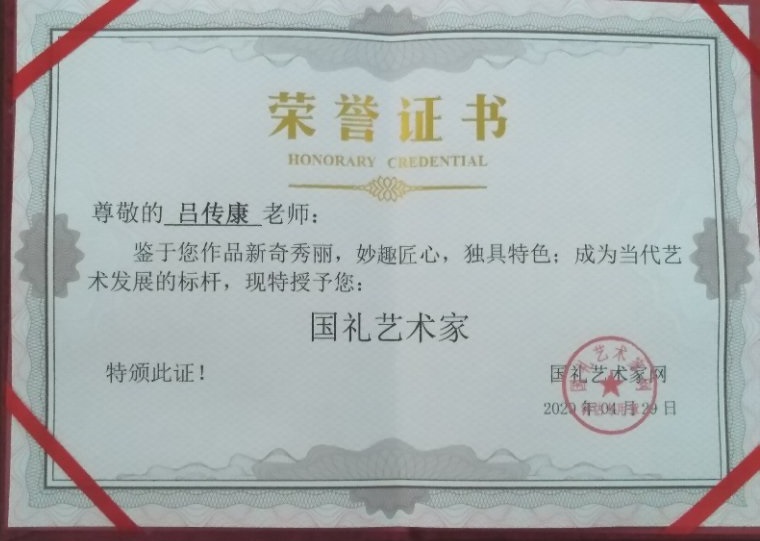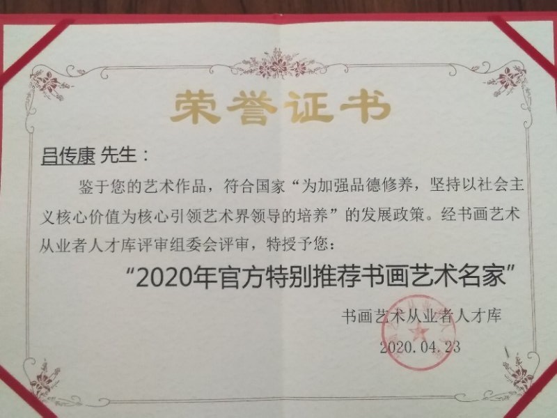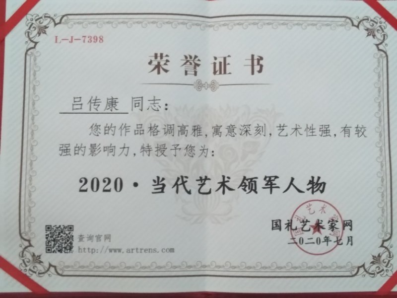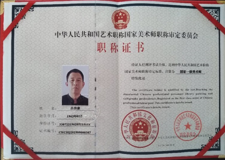 吕传康,国家一级美术师,现任中国书画家协会理事,中国书画院院士,国际中国美术家协会理事,全国才艺测评委员会理事,师承中国书画家协会主席,齐白石关门弟子刘金才入室弟子