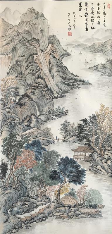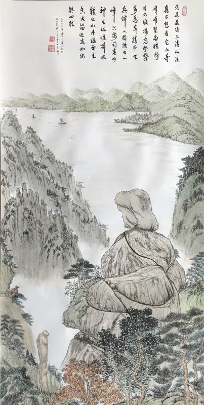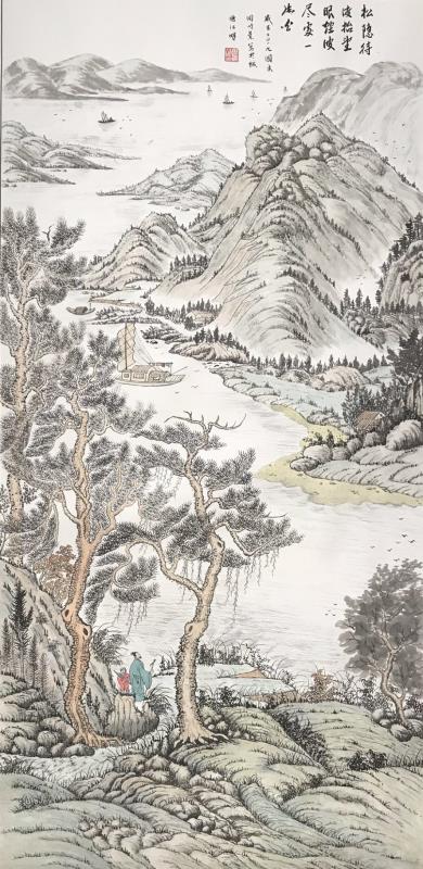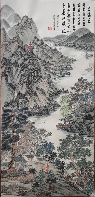 我觉得一幅好的画,必须是雅俗共赏的,不仅专家说好,更要让普通大众说好,对于美的东西,应该是有共性的,它给人以愉悦,既有美的享受,还能带给人以启迪。有位老画家曾经说过,如果每天能在一幅作品的前面停留3秒钟,那这幅作品就是成功的。我想这也就是作品所体现的魅力,让他情不自禁的去欣赏。而我就一直在努力探索这一境界。我始终秉承传统山水“三远四可”的法则,“三远”即“平远、高远和深远”,尤其是“深远”,它突破了西画一点透视的桎捁,可以让我们创作出类似于鸟瞰图而又优于鸟瞰图的视觉效果;“四可”即“可行、可观、可游、可居”,它更加赋予了山水画诗情画意的艺术魅力。因此,我在创作中特别注重三远的布局以及四可的内容。在我的作品中基本上能找到小桥、小路、江湖河泊、渔夫樵子、棋人高士、农夫牧童、亭台楼阁,村野山居等等,给单调的山水画面赋予了一定的遐想空间。其实,这些元素就起到了画龙点睛的作用。