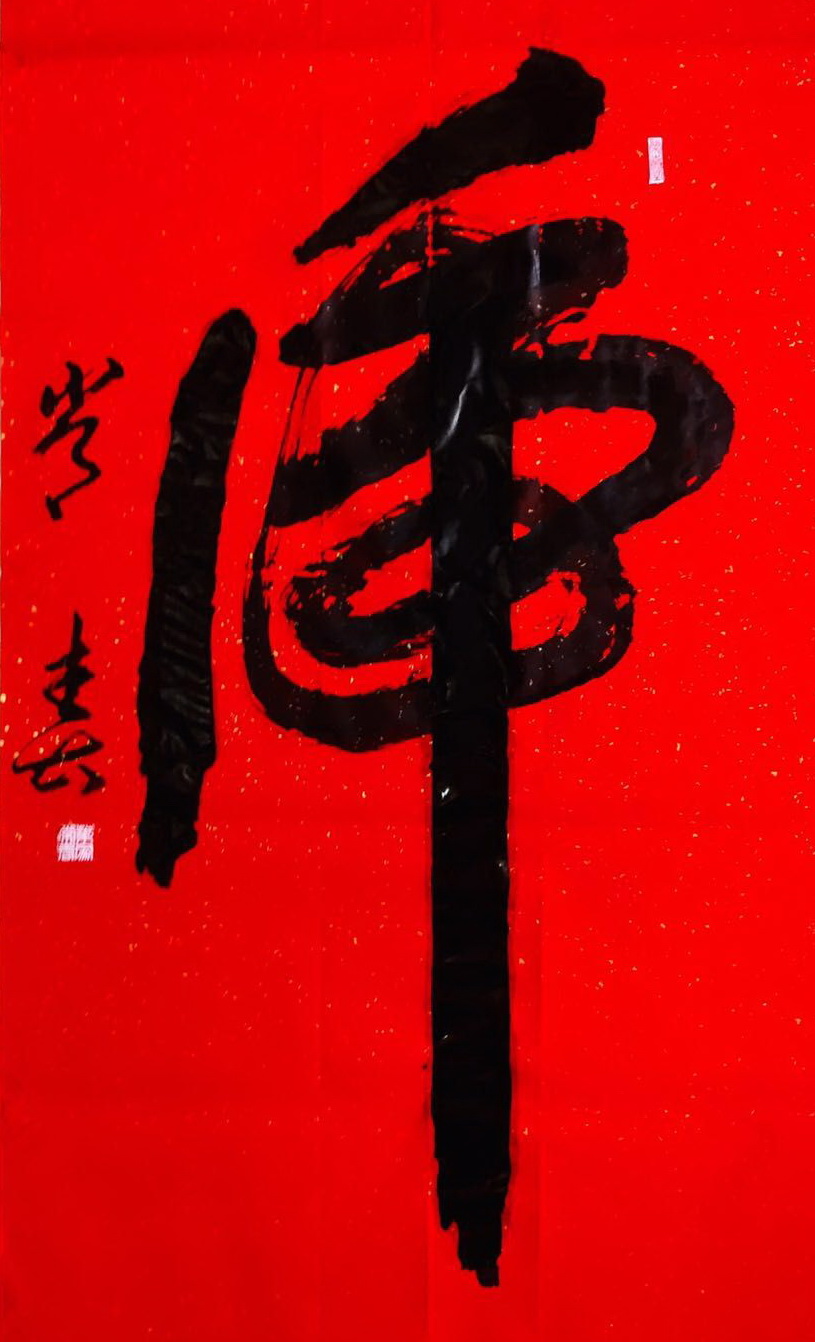 在他的神笔下,龙有千姿,寿有百态,鹰有飞翔之动感。观之犹如龙腾虎跃,横空出世;品之格调高雅,雍容不俗,是其内心世界与灵魂的体现,欣赏其书心旷神怡,扑面而来的是一股华人的智慧、民族的力量与不朽的精神。