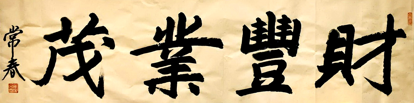 叶常春书法乃数十年如一日之修为,当有所成,其一气呵成巨擘榜书,峻利质朴,以气而胜,苍茫浑朴,大器浩然,壮观瑰丽,浑然天成,给人以痛快淋漓、潇洒自如之快感,真可谓一字千金,正如古人所云:“阔处能跑马,细处不容针”。