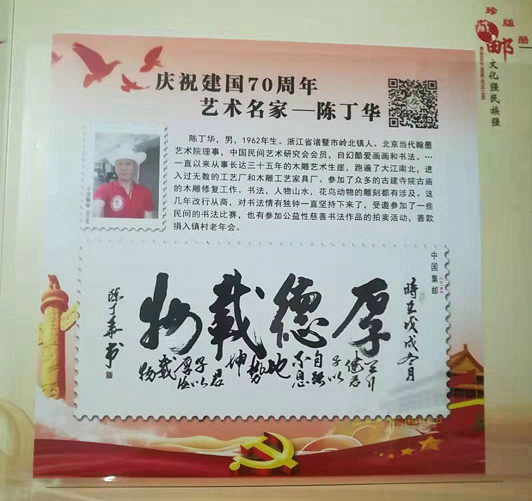 陈丁华,男,1962年生。浙江省诸暨市岭北镇人。北京当代翰墨艺术院理事,中国民间艺术研究会会员,自幼酷爱画画和书法。一直以来从事长达三十五年的木雕艺术生崖,跑遍了大江南北,进入过无数的工艺厂和木雕工艺家具厂。参加了众多的古建寺院古庙的木雕修复工作。书法,人物山水,花鸟动物的雕刻都有涉及。这几年改行从商,对书法情有独钟一直坚持下来了,受邀参加了一些民间的书法比赛,也有参加公益性慈善书法作品的拍卖活动,善款捐入镇村老年会。为中华文化的传承出一份力,积极参与。