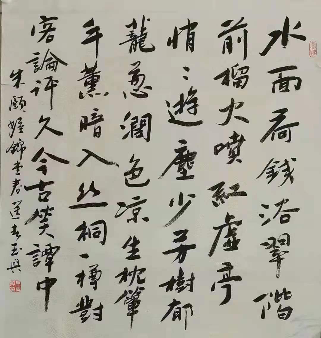 朱玉兴,堂号九如堂,自谓九如堂主。1951年生人,朱元璋二十代孙,明鲁王人,现居曲阜。现为中国书画界联合会会员,中国书画界联合会艺委会会员,中国水墨丹青会员。幼承家训,八岁习书,涉猎诸家,善榜书。
