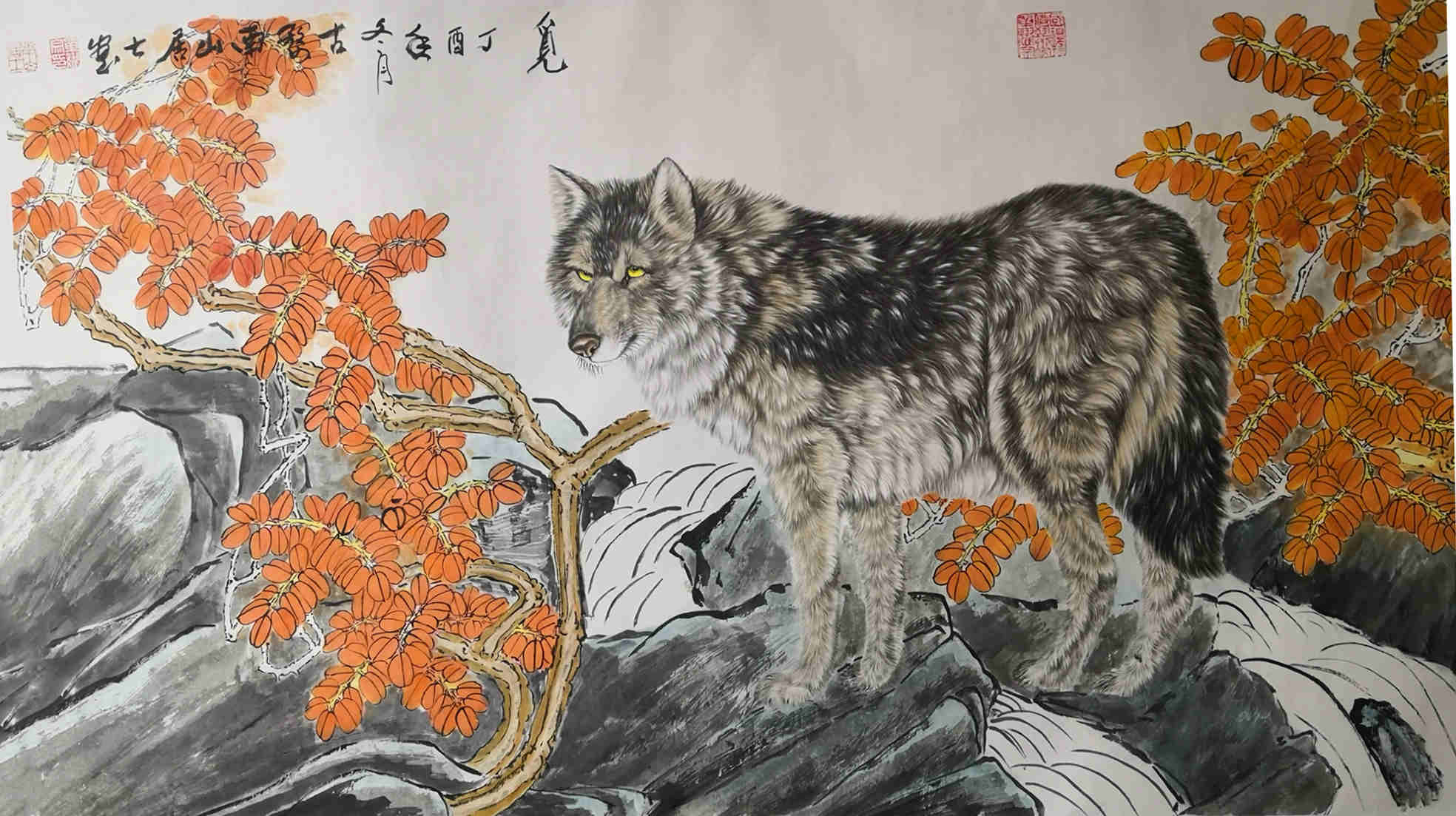 动物画以大型动物——老虎、狮子、猴、羊、马、鹿为主,老虎、狮子更有特色。画风以齐派和岭南派、长安派为基础,演变成自己的独特风格。画法以工带写,动物花鸟大写意和工笔画各具特色。墨虾一绝,曾得齐白石关门弟子、忘年交高中大师高度赞扬,并写诗评画说:“齐派画虾有传人”。自创重彩工笔画用生宣直接作画,其画法深得海内外行家赞扬。作品被国内许多大收藏家收藏主要流向美国、新加坡、韩国为主。