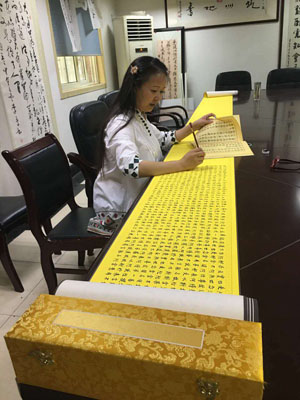 周金芬,字冰洁,号清和堂主人,1972年出生于浙江省乐清市虹桥,先定居杭州。系杭州书法家协会会员,乐清联学会会员,作品多次参加杭州运河博物馆书法,九十年代初拜著名书法家苏适先生门下,河南书法家石朝晖门下,主攻书法,潜心书兿,寄情翰墨,以艺更高为所求。重学识以养其字。自有幼酷爱书法艺术,数十年临池不辍,手摩心画,博采众长,出新求变,书风点画浑后饱满,静中有动,断中有连,墨由浓而淡至枯 ,刚柔并济,骨力劲挺,进而形成了雄健豪放,大气磅礴的行书风格。