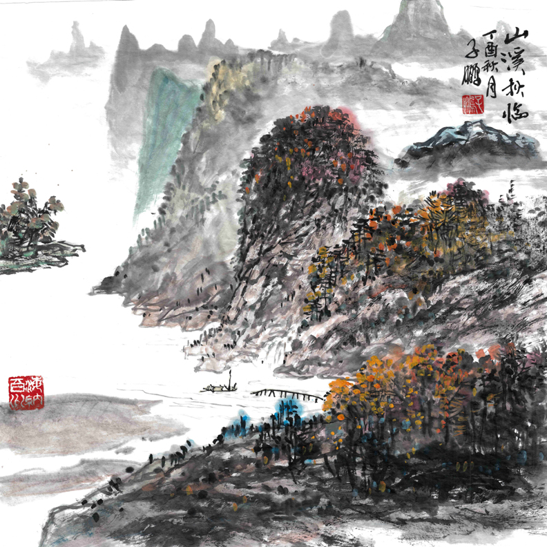 画家自幼潜修,习文练武,好国画,经过长期的艺术实践,将太极理论和禅学联系结合,以此为创作的支点融入水墨丹青,寄情于山水,形成独特的艺术语言。作品呈现出和谐、深邃、静美的视觉舒适感,同时蕴含恢宏的气量,给人以强烈感染力和无限的遐想。