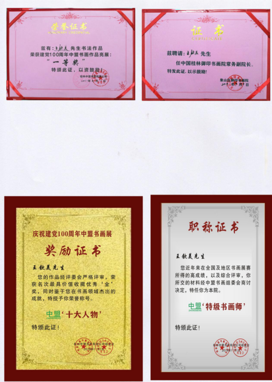王钦美先生,自幼历来一直酷爱书法、临池不琢、遍临唐楷诸贴、以古碑帖中吸纳笔法、意境精华,从魏楷墓志入手、形成了空灵活泼、独具面貌的魏楷书风,还兼修行草,拜访名师、刻苦耕耘,遍临宋、明、清、绘画作品,从中领悟中国传统绘画用笔和构图技法,以贴为师,探索书道之精华。曾启蒙老师、方永光先生学习楷书,1999年学习曾丽雪女士绘画,2005年授林志良先生的转课教导,历记40多个春秋从艺基础上、人笔墨香功底深厚、广学博用,创作时得到中国著名历史学家、书画大家、任德山教授的点评,作品含有博大胸怀,不仅是一位优秀的艺术创艺家、还是一位关心社会、奉献爱心的慈善家。2020年任桂林御印书画院常务副院长,2021年桂林中盟书画有限公司经理,中盟书画博馆顾问,中盟书画实习基地副主任,中盟书画组委评委,中盟书画在庆祝建党一百周年作品展、书法作品荣获一等奖,深圳福田青年书画家协会顾问,随着正能量文化发展、多幅作品被中外书法爱好者收藏……
