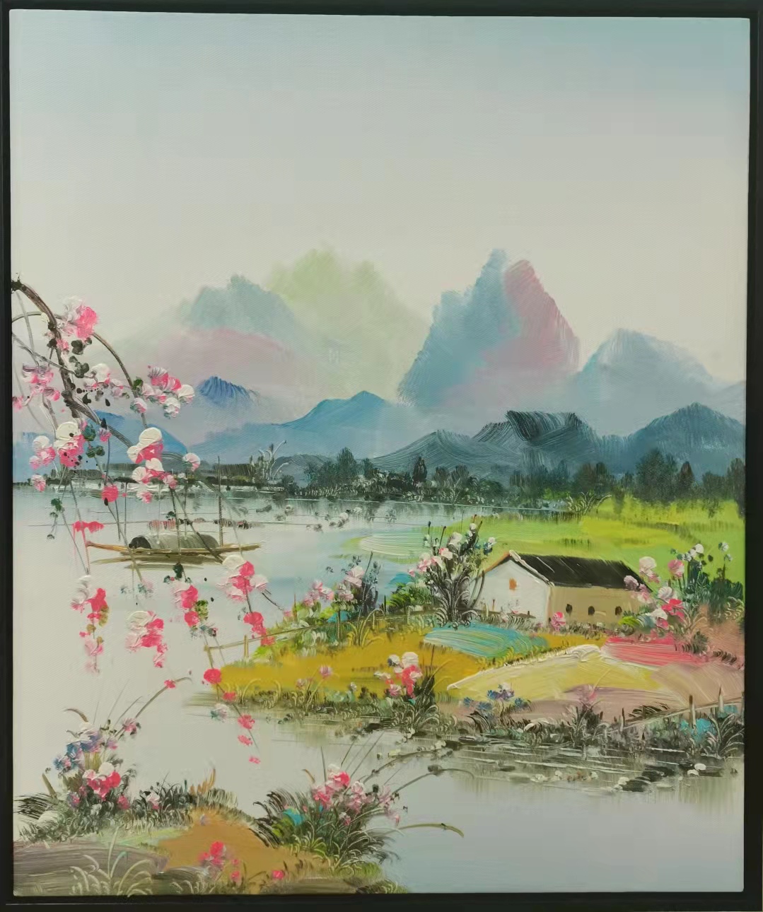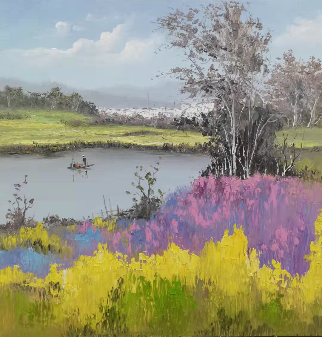 郑海英女士绘画三十多年,桃李满天下,漫漫艺术人生路,是生在大海边,长在老街巷。可以说有浓郁的故乡情怀,将艺术追求看作一种精神使命,艺术因回归自然而富有灵性,自然也因艺术的渲染而更增添生机。艺术探索性是科学,从文艺复兴时期,达芬奇作为油画坐标,作为定位,一直在变, 一直在探索,变到了印象派,变到了梵高,变到了马蒂斯,变到了毕加索等。都是一种创新,需要不断探索更多的创作元素,变化多种表现技法,满足人们多种的审美情趣。当下创作的每幅油画作品都是她对存在事物的艺术再现,她的创作灵感可能来源于一个点,里面可能有禅、有泉、有海、有船、有山、有深邃的理念,更有人生的内涵。在创作的题材作品中,展现了一种阳光的生活气息,山野,海景,老巷街景,民族肖像人物等,画面上弥漫着宁静和祥和,渗透着中国传统的美感。从绘画本身的技法、色彩、构图上,不难看出英子女士细腻的艺术感觉和超高的绘画水平;从作品内容上,对文化创造的一种朴素和包容。无论是描绘华夏大地的幽美风景还是生动传神的女子肖像或充满生机的乡村风貌,无不体现画家的一种追求,“运用西方的技巧,赋予作品东方的韵味”。