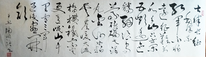 陶先生平时除了练习、推广【成语养生法】外,空闲时也经常练习他兴趣的书法。他说:练习书法也是养生的好方法。