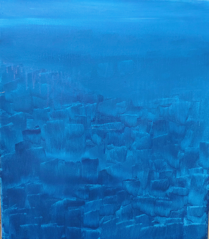 她多层次的艺术造诣和学养,使得她血液里渗透着艺术的多重元素,她虽有不落世俗的诗词才情和穿越天籁的作曲天赋,但她大部分的时间却在画室孜孜不倦,默默无声地用油彩在亚麻布上,耕耘着一幅又一幅的意象油画。