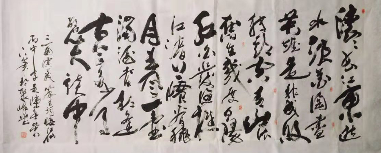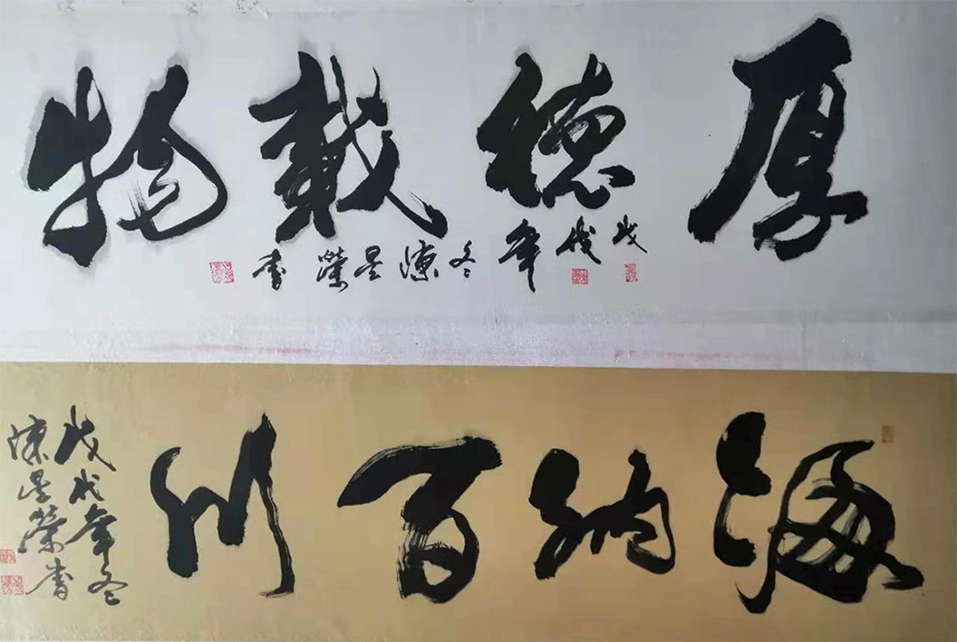 书法以真、行草、隶书为擅长,行草刚柔兼容,飘逸清秀,气韵贯通,笔墨酣畅,自成风貌;隶书在研习汉隶的基础上,苍劲古拙,典雅醇厚。
