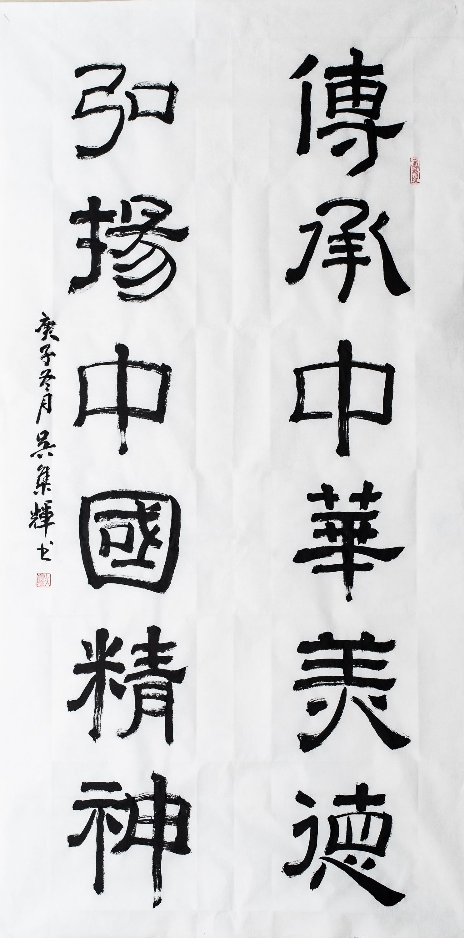 字如其人,人正则字正!袭古创新,把书法和篆刻有机结合,不但具有浓厚金石气息,更是把隶书行书有机结合,苍劲有力,洒脱自如!功力深厚,字如刀刻泰山,表现了吴集辉很好人文情怀,坚定而自信。为宏扬中华文化不懈追求,努力攀登新高峰!