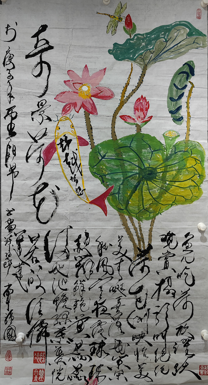 曾参加国内多次书展,有参加市级大赛的获奖作品,有登报的书法作品、印章和诗,得到诸位亲朋好友的喜爱、收藏、认可。有诸多作品(婚庆、庆典、喜寿古诗和名句等作品)在国内外好朋友均有收藏。
