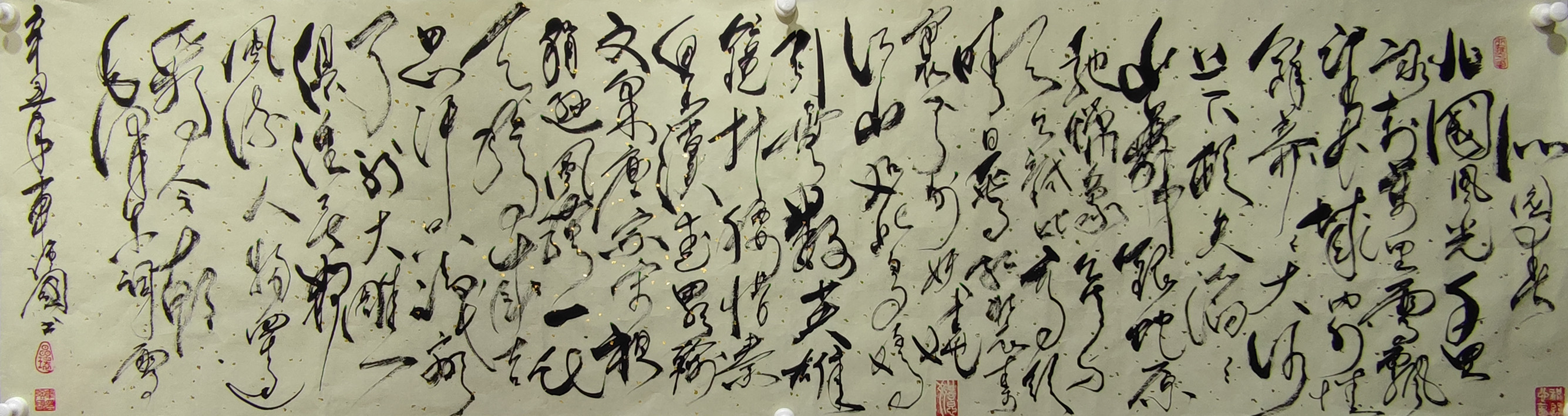 中老人时报、今晚报、天津文学艺术网、中华文学艺术网报导车强国书法家的草书作品《善悟》,给出的是“对书写潇洒豪迈的草书字体,必须是——“循序渐进、别具一格”的标题。