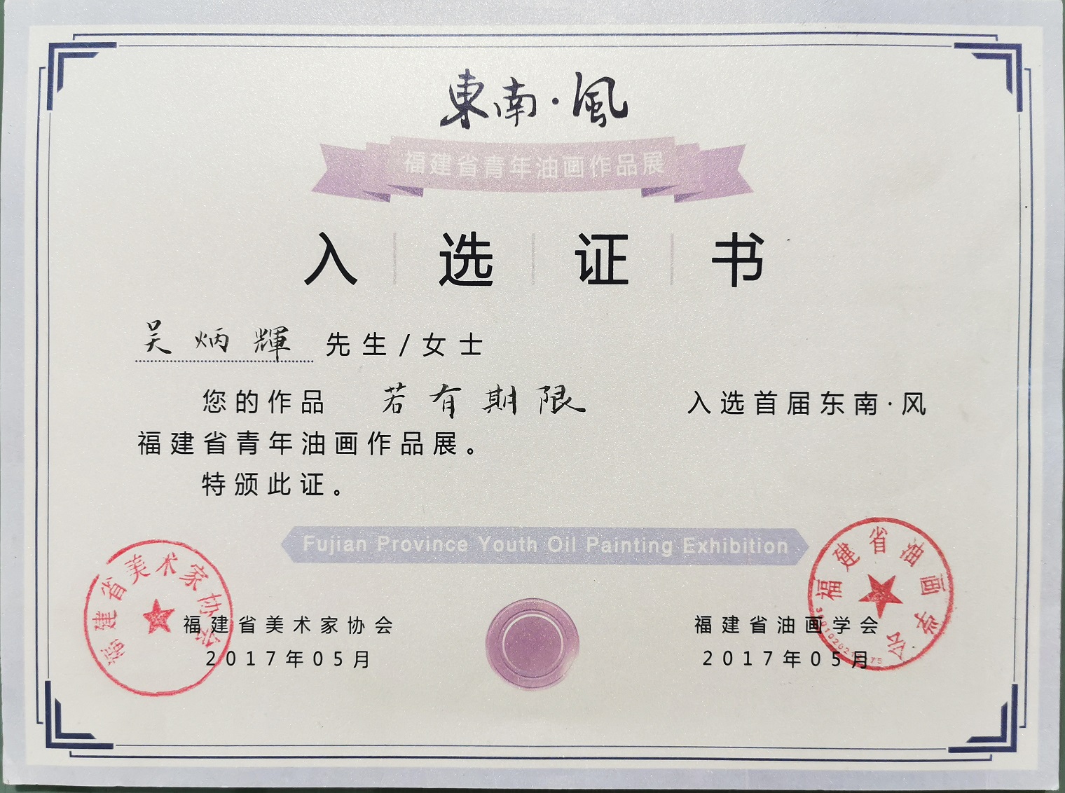 2017年5月 作品《若有期限》入选首届东南.风福建省青年油画作品展。