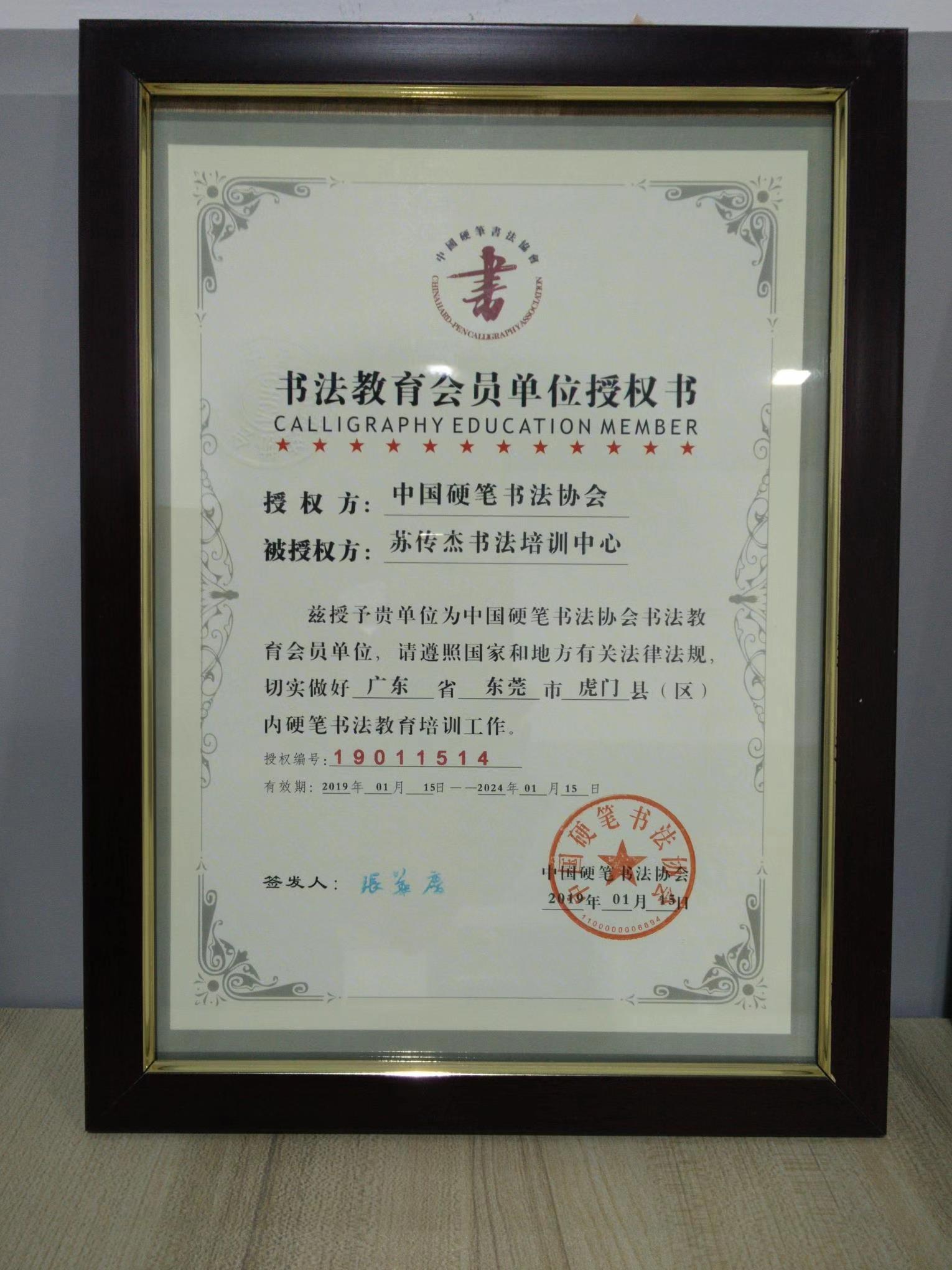 2019年初经(中国硬笔书法协会)受权.掛牌成立《苏传杰书法培训中心》