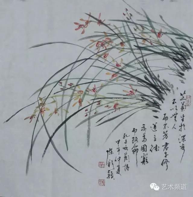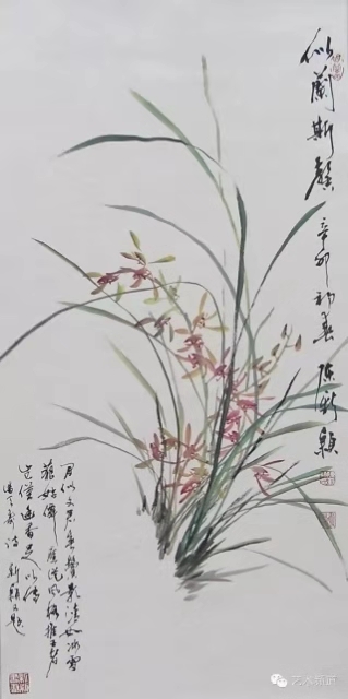 概之,陈新颖所创作兰花,观之有神,赏之有韵。以质论之,是以神采,此乃作兰花有韵味之美。美不遮其丑,丑中含其美,美丑兼而有之,是为常理,万物生存之道矣!明者,扬其美、避其丑,是立世之本。写兰亦然也。