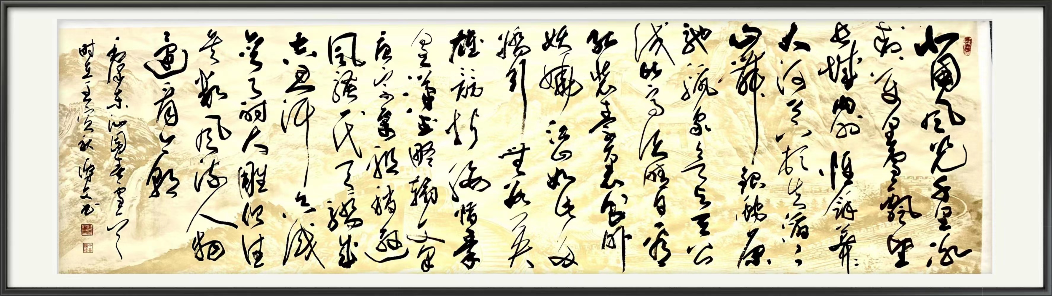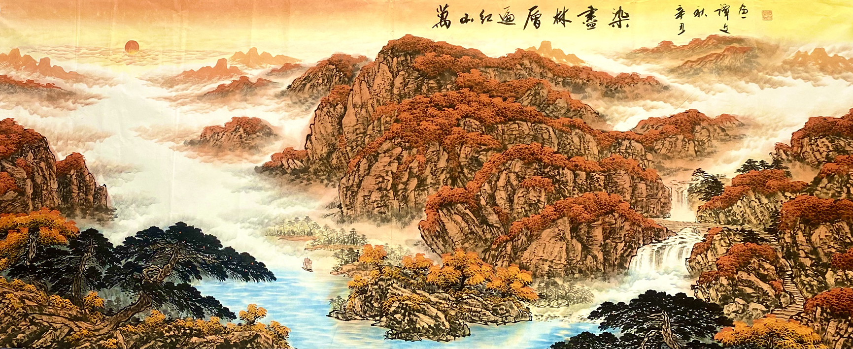 代表作有巜沁园春、雪》巜沁园春长沙》巜山居秋暝》《厚德载物》巜云水禅心》等,先生在绘画方面也颇有成就,山水、花鸟皆有建树、山水画《春潮》《云嶺秀色》《源远流长》巜大吉祥》等、作品多次入选中国艺术名人集、《沁园春雪》在苏富比拍卖行以18.6万成交、绘画作品《基业长青》以26.6万成交。