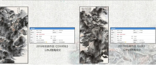 向伟老师作品真实拍卖数据,在2014年、2015年分别拍出9.2万和11.5万的好成绩,但由于身兼艺术交流部部长一职,向伟老师特别反对自己作品提前上拍,按照向伟老师的规划,他的作品未来价格会更高,建议藏家不要急着上拍,(下图作品是藏家自己前往拍卖公司送拍),从这个角度看向伟老师的作品深受国内大型拍卖公司的青睐。