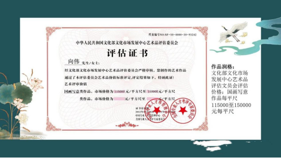 向伟老师因成绩突出,2018年被中国国家画院聘请为国家画院国家画院艺术交流部部长,他的级别看齐中国美术家协会理事或省美术家协会主席。国家画院历来出国画大家,李可染为国家画院第一任院长,现任院长为卢禹舜,向伟老师在职的国家画院艺术交流部主要是负责管理国家画院内的顶级艺术家的各种展览的审批统筹工作,身兼重任,所以现在收藏向伟老师作品正是最佳的时期。