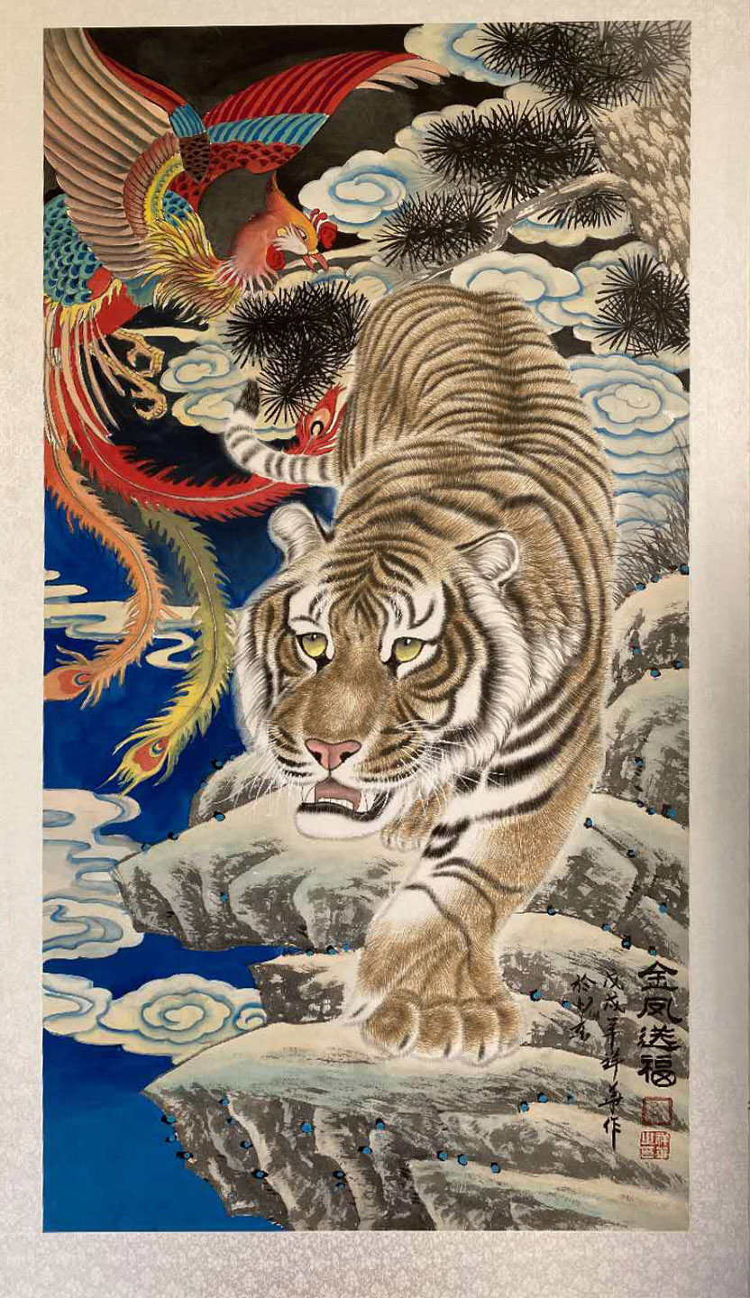 孔祥华先生在传统绘画基础上,逐渐形成了自己的画风,作品讲传统、重笔趣、求气韵,从而达到画面意境深邃、大气精美、雍容典雅、充满情趣的效果。加国际艺术交流,其作品多次入选国际、国内画展,并