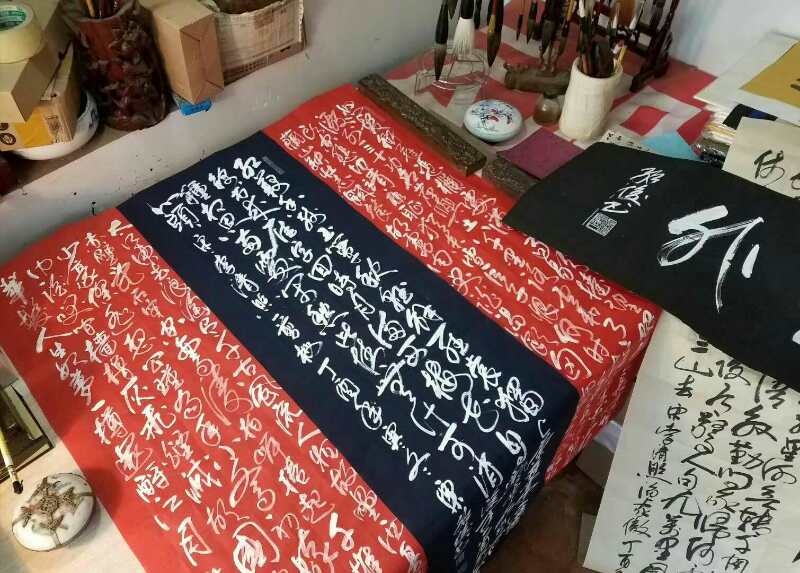 他自幼热爱书法艺术,在部队和地方工作时,都利用业余闲遐时间,以自娱自乐的方式和态度,随心所好,长期研习,对书法、印章篆刻、剪纸和书画装裱等都有一定造诣