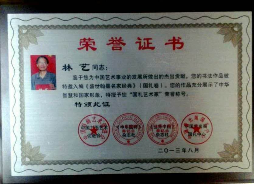 国礼艺术家、中国当代最具收藏价值艺术家、文化部艺术中心 “一代书画大师” 特邀艺术家、中国书画家协会会员、北京朝阳区书画家协会会员。