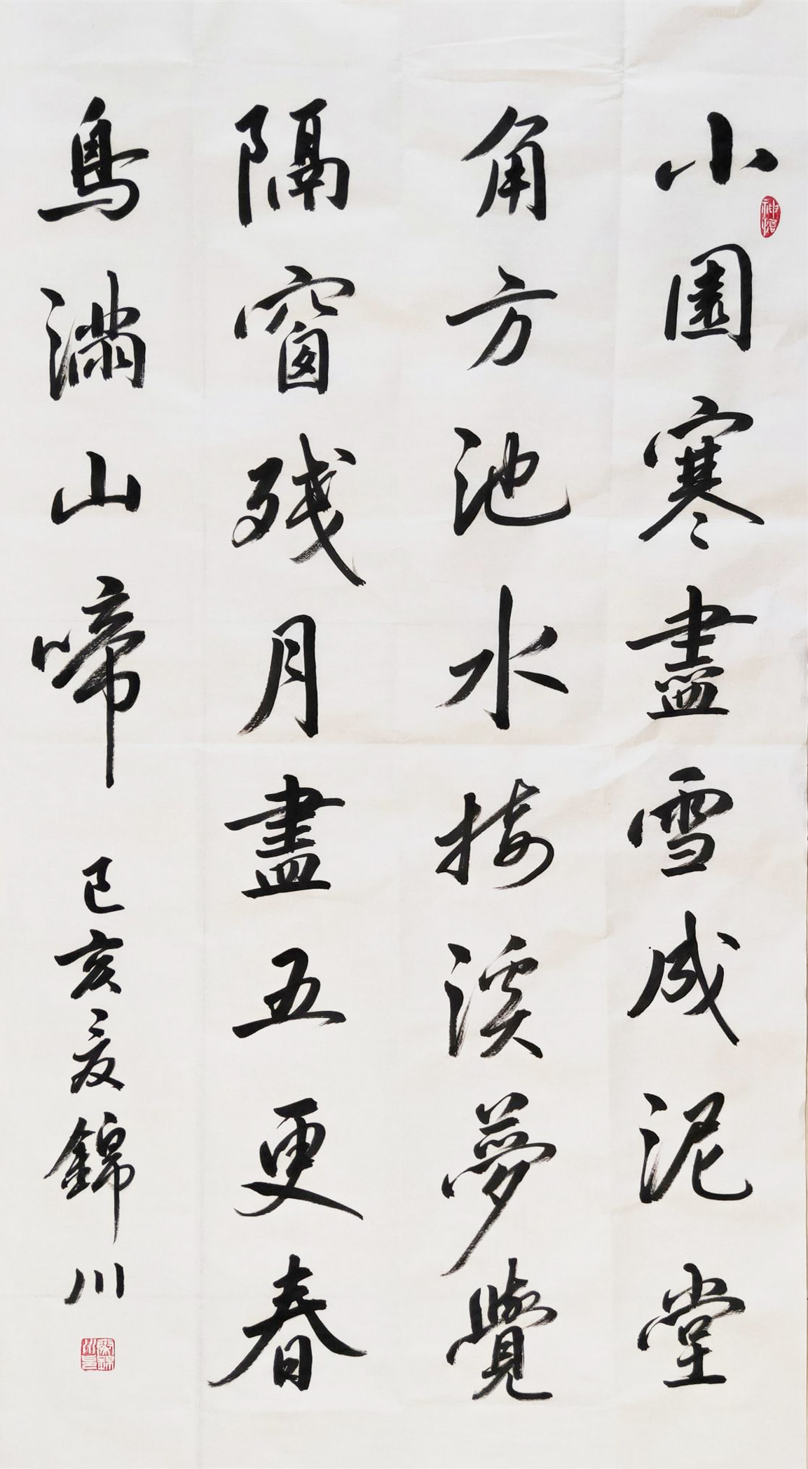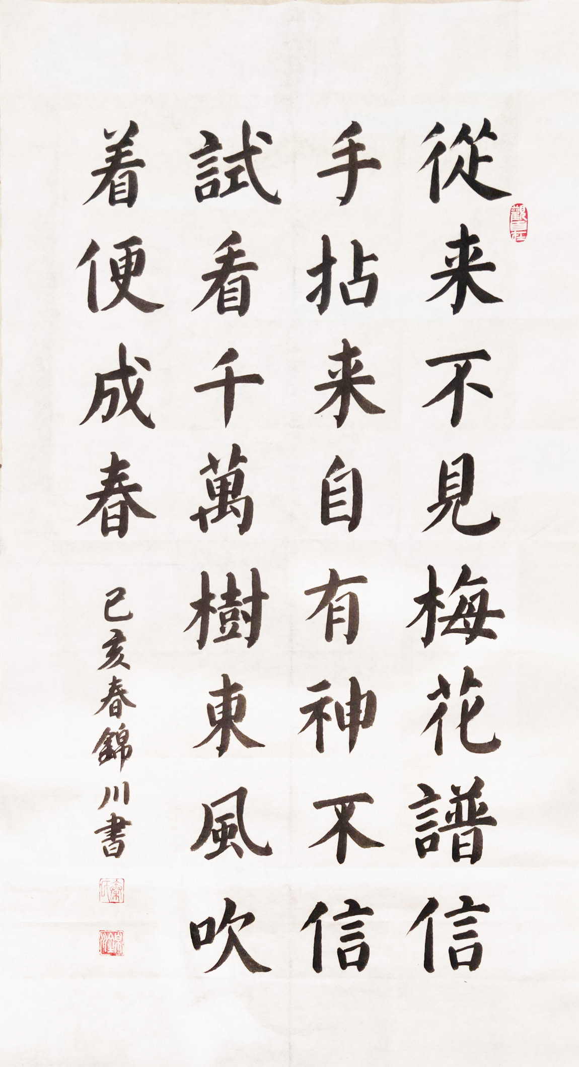 秦锦川,笔名由之,男,汉族,甘肃省靖远县人, 1956年出生,1976年入伍,历任中国人民解放军原总后勤部某部书记、主任、政委等职。现为中华诗词学会会员,中国楹联学会会员,中国西藏自治区书法家协会会员,中国海峡两岸书画家协会大连分会荣誉副主席、特约书画家,世界华人华侨艺术家联合会会员,艺联网特聘艺术家,当代诗歌研究会常务理事,世纪诗典签约诗人,《新时代诗典》、《2018诗歌年鉴•中国当代诗人作品集》编委。热爱书法诗词,少承家教,学书习字;长用闲暇,临池笔耕;退役之后,诗书自娱。发表诗词一百六十多首并入编《中国当代诗歌荟要》、《新诗百年˙中国当代诗人佳作选》、《新时代诗典》、《2018诗歌年鉴˙中国当代诗人作品集》、《当代文学先锋人物大典》、《当代文学精选》、《中华当代诗典》、《中国当代˙诗词名家》等国家级出版社出版的书籍。书法入展“第四届、第五届、第六届中国廉政文化书画展”、“不忘初心,继往开来—习近平用典书画艺术专题展”、“党的光辉照我心—喜迎党的十九大西藏当代美术作品展”、“迎新春.同绘中国梦—2018中国书画名家艺术展”、“不忘初心,牢记使命—新时代书画艺术名家作品展”、“东方之韵国际艺术巡回展”、 “2018北京艺术博览会”、“绽放—2018第四届中国书画名家赴迪拜艺术展”、“迎新春˙同绘中国梦2019第二届书画名家艺术展”等。书法作品被中国行为法学会廉政行为研究会、迪拜艺术中心等单位收藏。荣获 “迈向新时代中国诗词书画摄影作品大赛”金奖、“庆祝中华人民共和国成立七十周年全国诗词书画摄影展”金奖、“纪念建军九十周年暨香港回归祖国二十周年诗词书画摄影大赛”银奖、“第四届翰墨九州全国影印诗书画大赛”铜奖、“第三届翰墨九州全国影印诗书画大赛”优秀奖、第五届羲之杯全球书画艺术大赛”优秀奖、“新时代文学奖”等10多个奖项,荣获“最具民族文化风格艺术家”、“弘扬红色文化,护航一带一路建设领军人物代表”、“中阿友好交流大使”、“中国当代红色爱国艺术家”、“新时代经典艺术家”、“中国新诗百年百佳诗人”、“中华当代百强诗人”、“新时代中国十佳诗人”、“全国第四届十大最美读书人”等称号。国内多家媒体以《不忘初心继往开来—艺术家秦锦川》、《走进潜心于书法诗词的艺术家—秦锦川》、《秦锦川先生书法艺术》等为题进行专题报道。