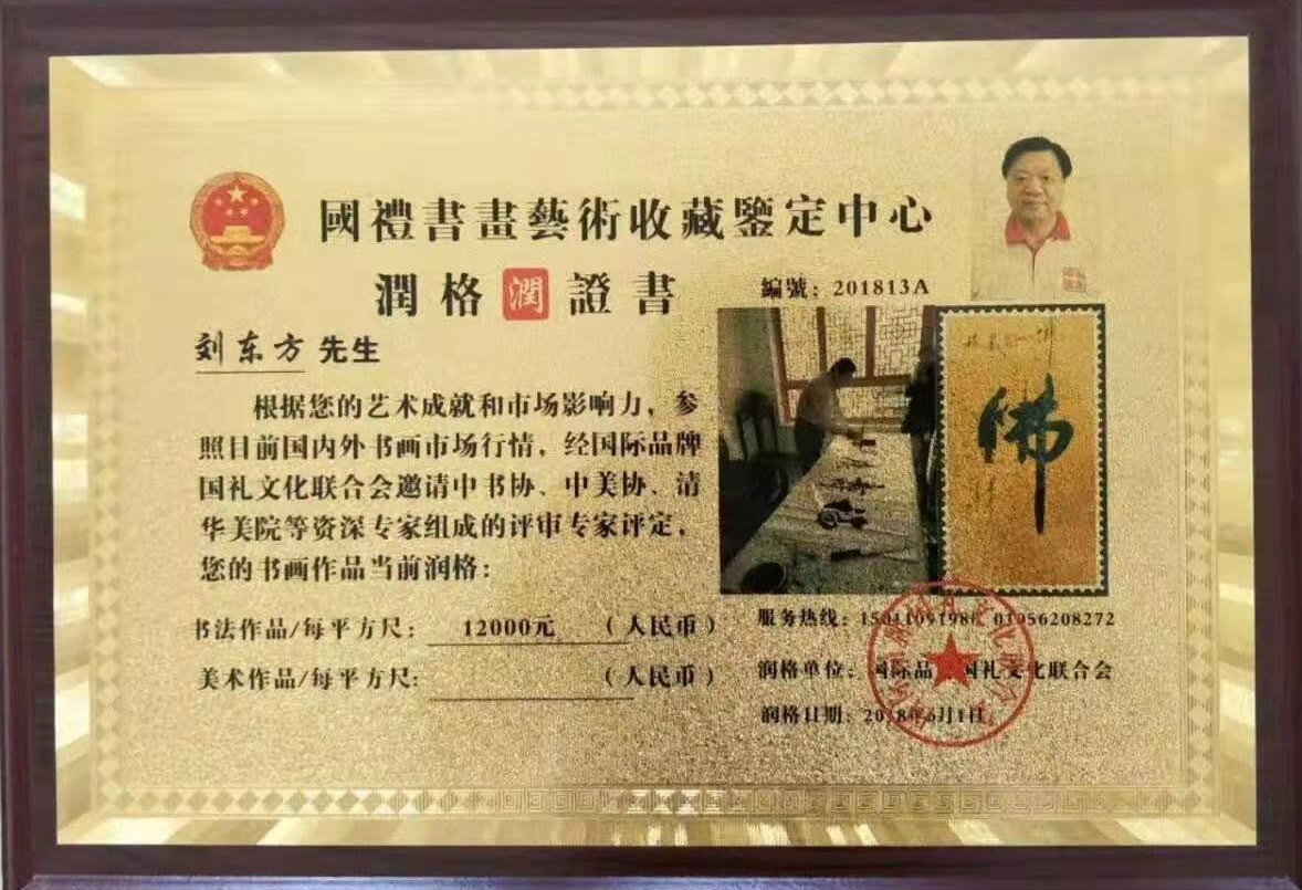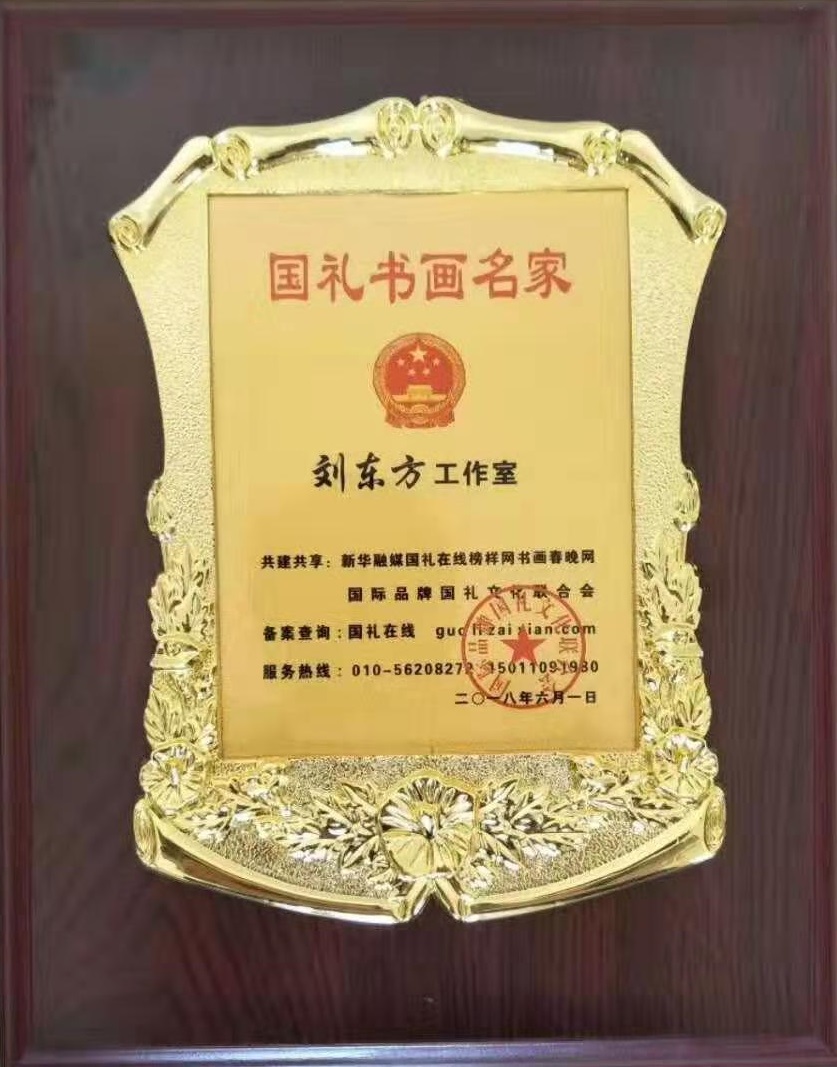 东方老师的作品在美国,新加坡,柬埔寨展出,深受国内外书法爱好者的好评,收藏。他书写的佛字,中国梦,受到习主席的点评,赞扬。他非常好客,全国求字的书法订单无际其数,书法风格独特,具有很高的艺术风范,不断追求更高的艺术之美,走向更高的艺术殿堂,为文化事业做出更大的贡献。刘东方老师现任:国礼书法大家,中国书画院院士,美国世界艺术家中国区协会长,艺术指导教授。