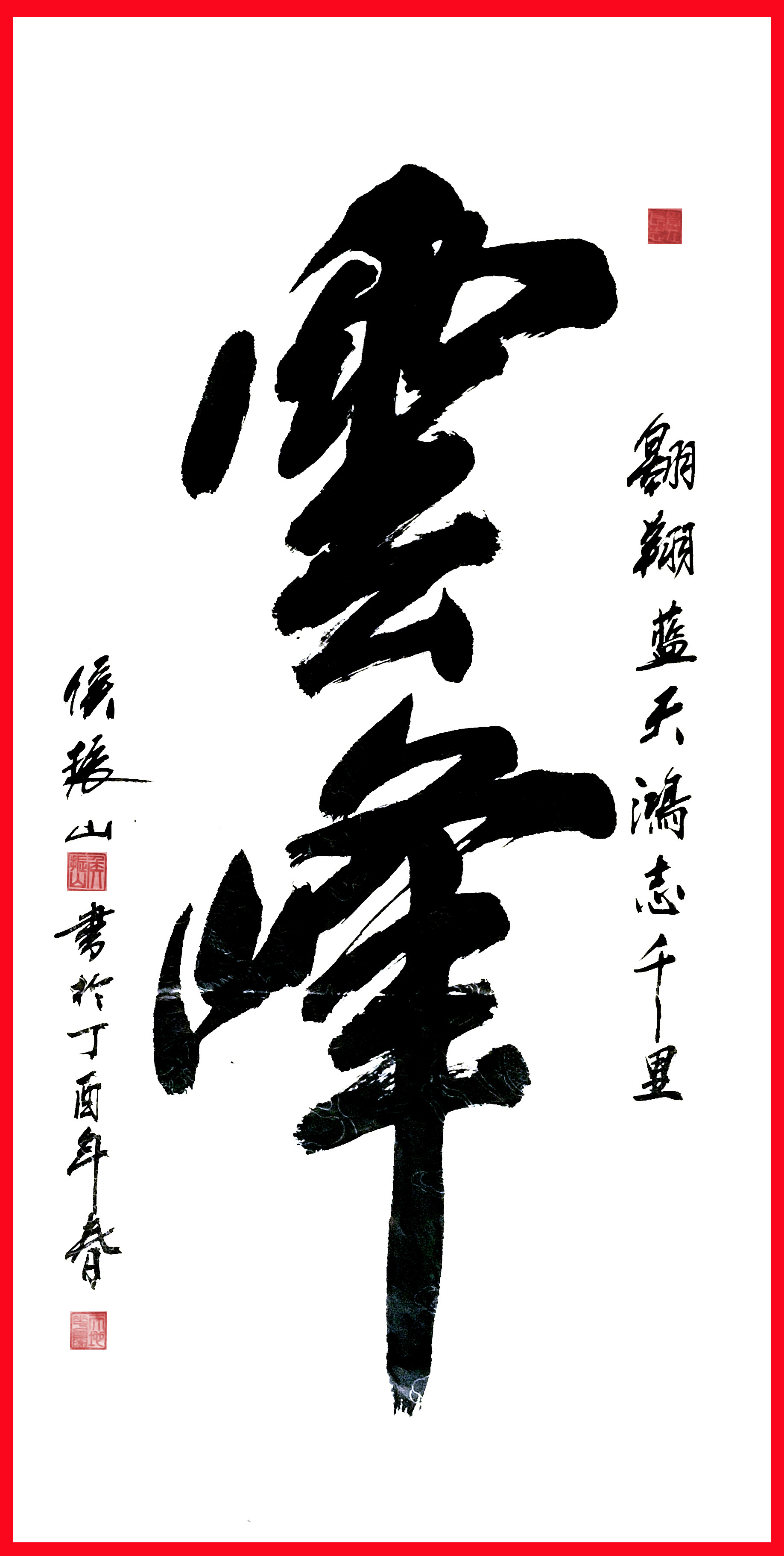侯振山武官5岁跟父亲学习书法,7岁拜师习武。军旅40年书法研究临池不辍。他的书法: 运笔洒脱,浑厚有力;笔路独特,文武意足;刚柔融合,豪气励人。南北边疆哨所、西沙南沙岛礁都留有他鼓励官兵奋进的墨迹。他的书法作品表达是一种大气、一种豪气、一种英气和一种励气。欣赏过他的书法作品之后,大都被他字体行墨间所散发出的那种磅礴大气、浩然正气、浑厚钢健的豪气所震撼。其书法作品曾以国礼赠送。