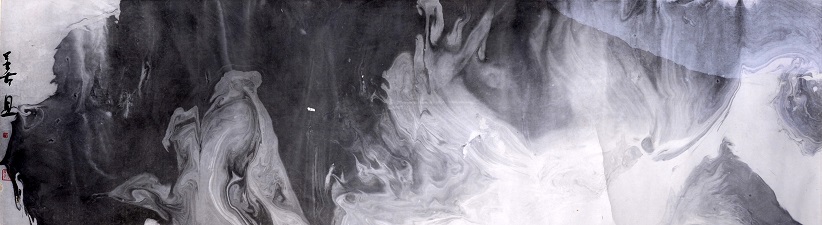 善旦的水墨作品是包罗万象的,不拘泥于线与面的分割,从布局上乍一看犹如盘古开天地的混沌一体,细处着眼却又是丰富多变的,抽象但不空洞 。从表现形式上来说随性而不失章法,他能通过感官使人的脑洞大开,每一个观者都能凭借一纸空间游弋于自我的心海。这就是善旦的艺术特性,他的作品包容、博爱,有天工开物的壮观,有鬼斧神工的奇妙,更有能度化万物的形式美感 。