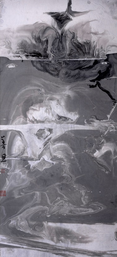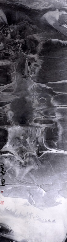 初识善旦是在中国人民大学艺术中心,当时他师从王超先生。印象中他比较腼腆,言语不多但心性善良。后来听说他去了青海,剃度皈依佛门,法号善旦 。在浮躁的现实中他找到了那么一扇门,或许那是他向往已久去安置灵魂的圣地,从此佛门多了一个心怀水墨精神的善旦 。画由心生,透过一件艺术作品可以看到作者的胸怀及思想境界。善旦的水墨抽象作品正是他的内心世界的一次次独白,他的世界是纯善的,他以小我的境界去诠释天道大美,这种思想高度是具有佛性的 。
